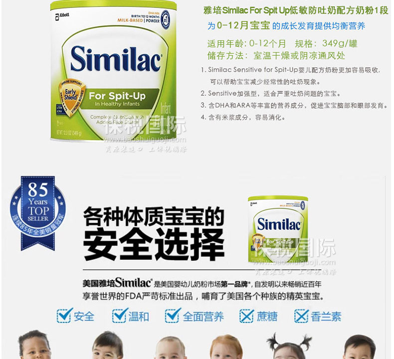 美國原裝進口 雅培Similac For Spit Up低敏防吐奶配方奶粉1段 349g/罐*3 |