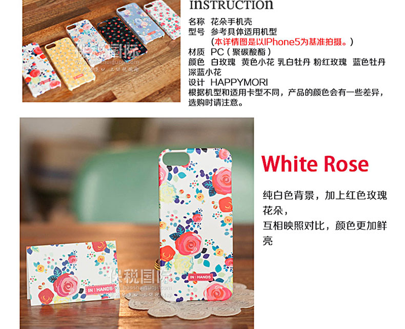 韓國Happymori乳白牡丹圖案優雅手機殼—— 1.PC材質,耐熱,耐沖擊,抗摔,且不易變形 2.設計簡約,大方,凸顯女孩的氣質 3.乳白色的背景,加上含羞待放的花朵,粉紅和薄荷綠色相互輝映,凸顯女性的魅力! 備注:硬質材料在大的沖擊下容易破損,使用時請格外注意! |