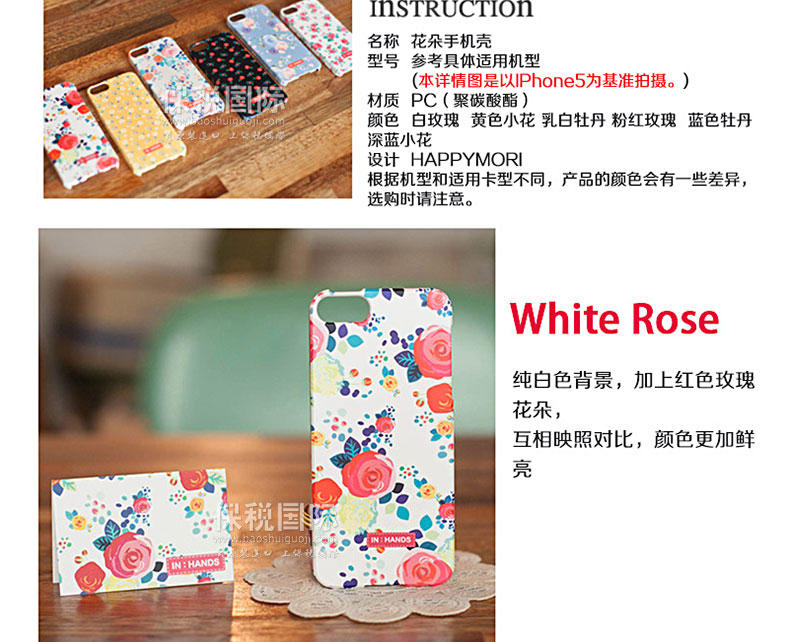 韓國(guó)Happymori藍(lán)底牡丹圖案手機(jī)殼 |