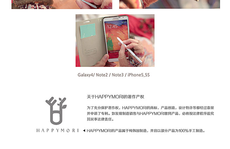 韓國Happymori“KitschKitsch”海軍藍手機殼—— 1.PC材質(zhì),耐熱,耐沖擊,抗摔,且不易變形 2.設(shè)計簡約,大方,充滿個性! 3.延續(xù)之前的diary樣式,翻蓋設(shè)計,更好保護手機,給您帶來不一樣的感覺! 備注:硬質(zhì)材料在大的沖擊下容易破損,使用時請格外注意! |