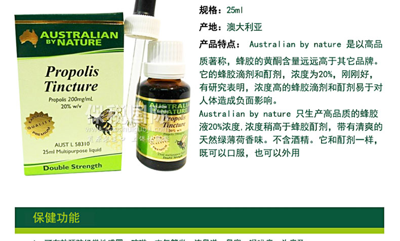 澳大利亞原裝進口Australian by nature 天然蜂膠酊25ml |
