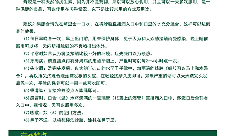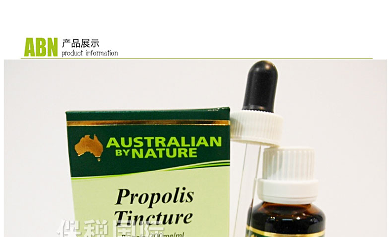 澳大利亞原裝進口Australian by nature 天然蜂膠酊25ml —— 蜂膠酊為含酒精的多用途液體配方產品 ,具有蜂膠的抗菌、抗病毒、麻醉、抗氧化、抗生素的性能。蜂膠酊可外用,輕微的皮膚癥狀,如丘疹、蚊蟲叮咬、輕微割傷;也可口服,緩解喉嚨疼痛,感冒和流感的癥狀。 |