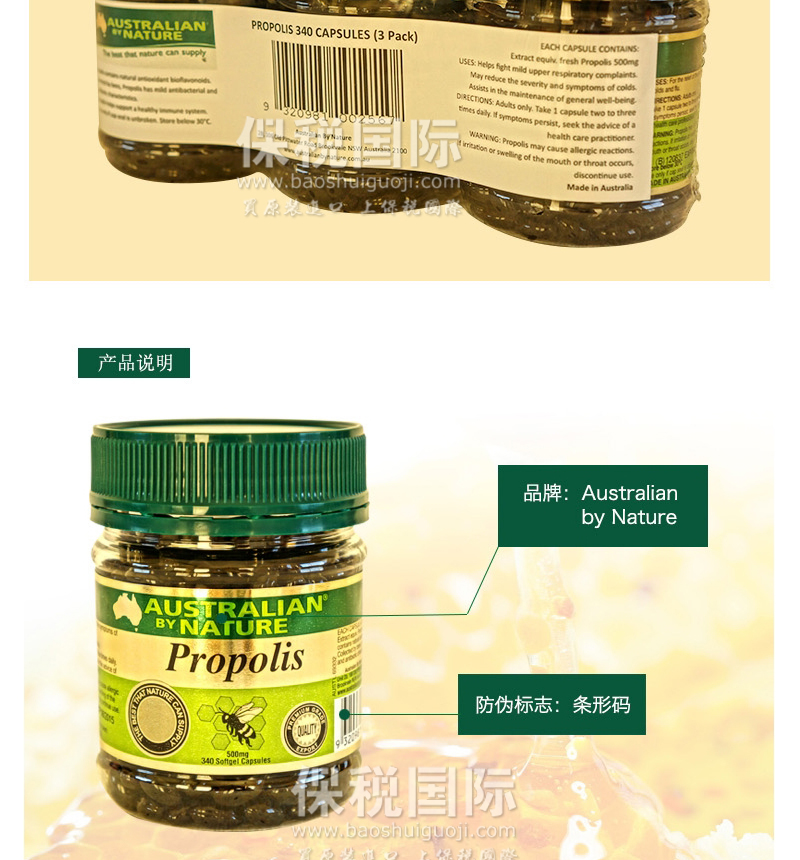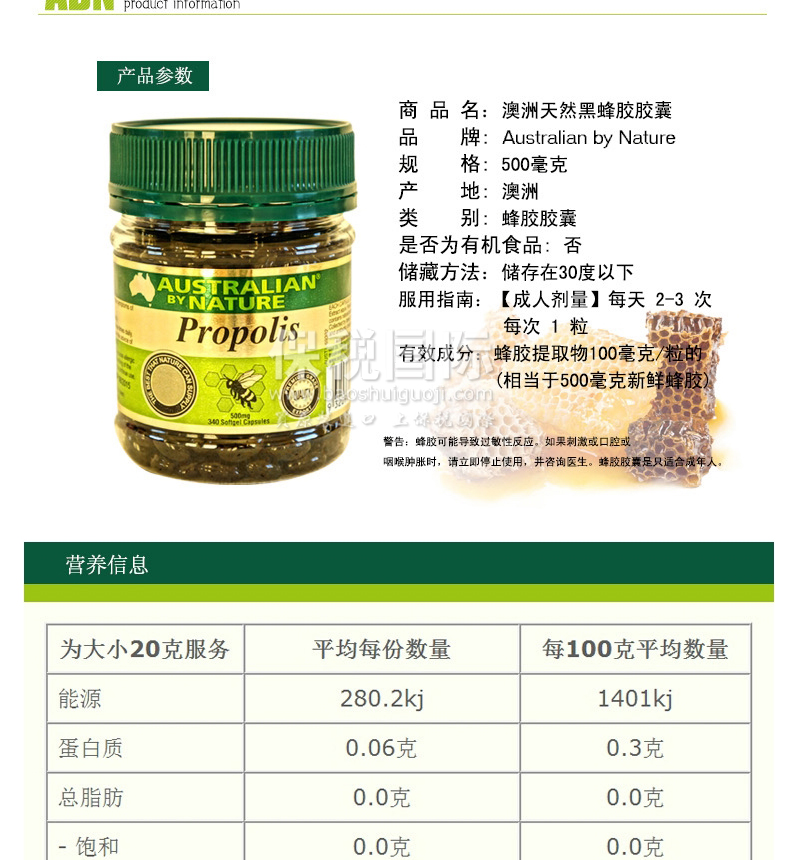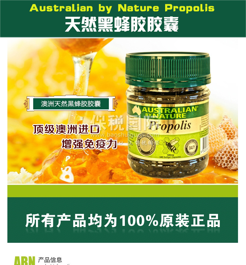 澳大利亞原裝進口Australian by Nature 天然黑蜂膠膠囊500mg340粒 |