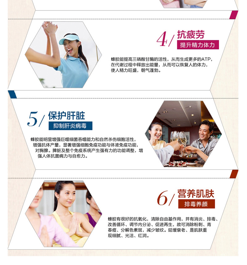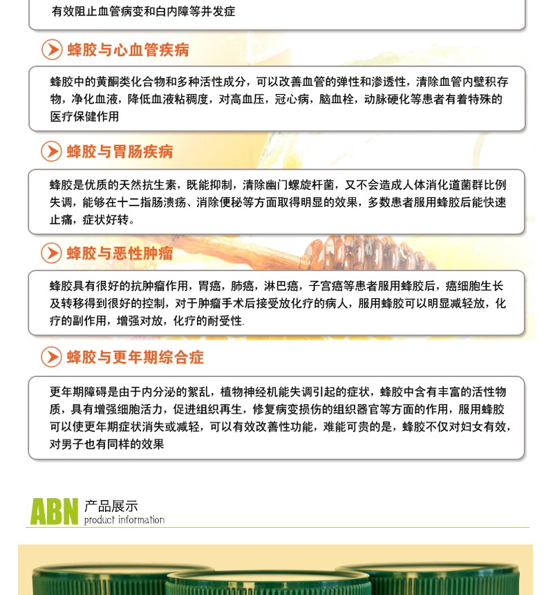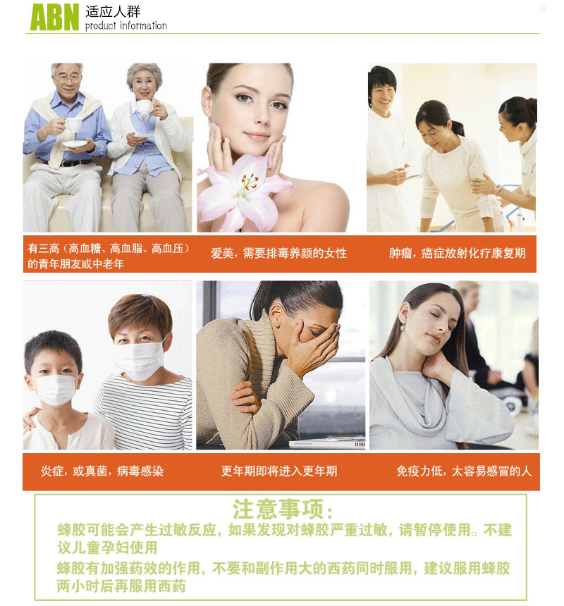 澳大利亞原裝進口Australian by Nature 天然黑蜂膠膠囊500mg340粒—— 蜂膠中含黃酮類化合物和多種活性成分,可以改善血管的彈性和滲透性,舒張血管,清除血管內壁積壓存物,凈化血液、降低血脂,降低血液粘稠度,改善組織微循環狀態,并且具有較強的抗氧化、清除自由基的作用,蜂膠對眾多細菌、真菌、病毒同時具有抑制、殺滅作用,是一種珍貴的天然廣譜抗生物質。細菌對蜂膠不會產生抗藥性。人們應用各種胃炎、腸炎及十二指腸潰瘍取得了理想療效。同時蜂膠具有良好的成膜性,能夠在胃及十二指腸粘膜上形成一層酸不能滲透的保護膜是良好的粘膜保護劑. |