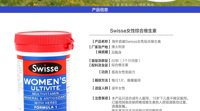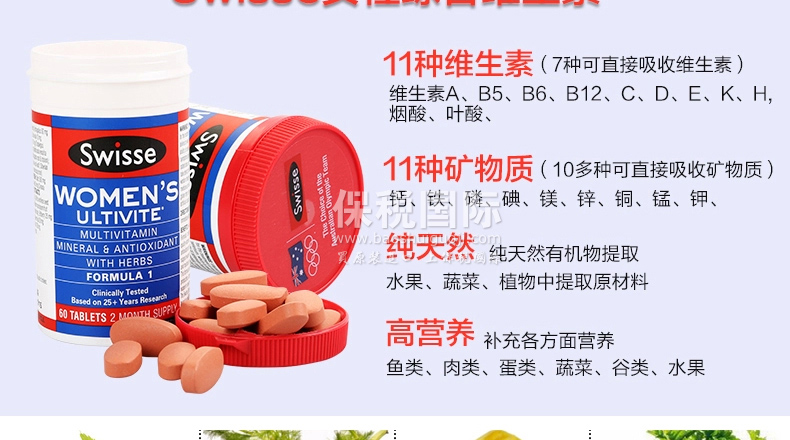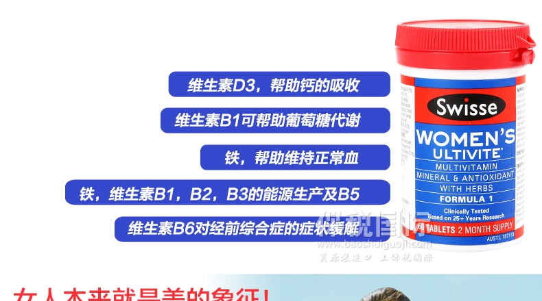 2瓶裝 澳大利亞原裝進(jìn)口Swisse Women's Ultivite F1 女性活力復(fù)合維生素60粒 /瓶*2 |