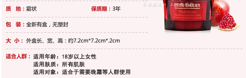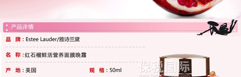 個護化妝> 面部護理> 面霜> Estee Lauder雅詩蘭黛 紅石榴晚霜 去黃去暗沉抗氧化 補水保濕霜 50ml
