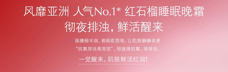 風靡亞洲,人氣NO.1的抗氧排濁晚霜,還可以做睡眠面膜哦!給肌膚一個鮮活欲滴的未來。