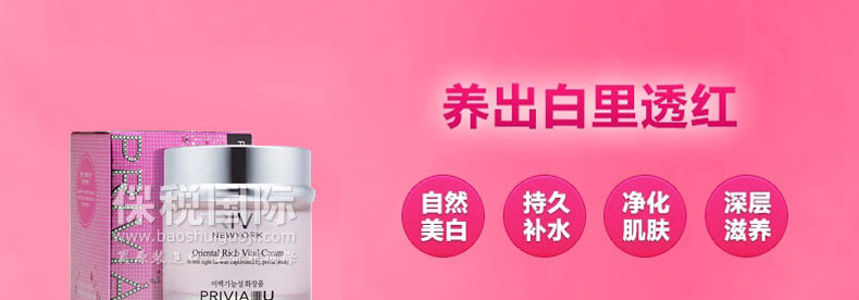 韓國原裝進口普瑞雅雪晶保濕嫩白乳霜 50ml—— 富含天然植物萃取物VITAMIN-F和高濃縮營養成分使肌膚富有生氣和彈力。OLIVE OIL- 提供充分的保濕效果。含有抑制酪氨酸梅的成分和活性作用的熊果苷,能夠抑制和減少細胞內黑色素的含量,是一款美白保濕專用功能性營養霜 |