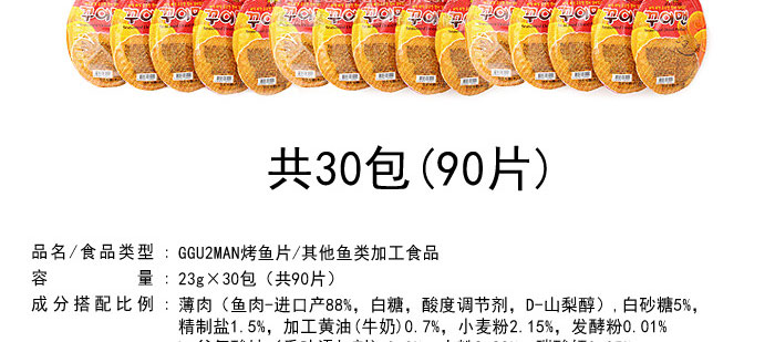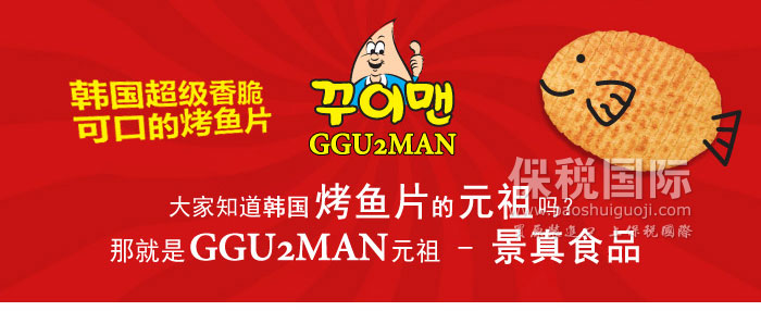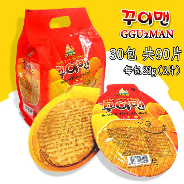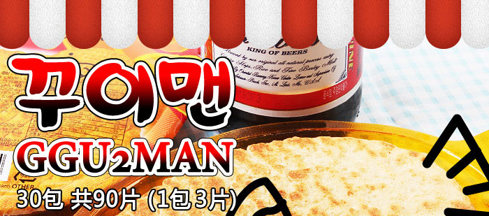 韓國GGU2MAN 烤魚片 30包—— "不要只喝啤酒吃炸雞哦,嘗一下啤酒下酒小菜GGU2MAN烤魚片 香脆可口,啤酒絕搭!下酒菜更美味的GGU2MAN GGU2MAN是用魚肉加工而成的魚干制品,是韓國非常有名的零食。有點嘴饞了或想喝一杯時就選GGU2MAN~" |