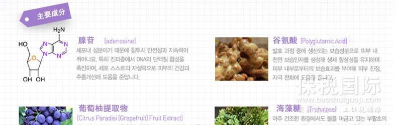 韓國原裝進口普瑞雅雪凝水酷凝肌精華液 50ml—— 含有認證抗皺功能性原料腺苷的化妝品 一接觸皮膚就快速滲透到毛孔,管理周圍角質,整頓皮膚紋理,強化皮膚彈力 其中腺苷、葡萄干細胞成分能快速深入到肌膚 是一款集整頓肌膚紋理、管理毛孔、供給水分為一體的保濕嫩白爽膚水。 |