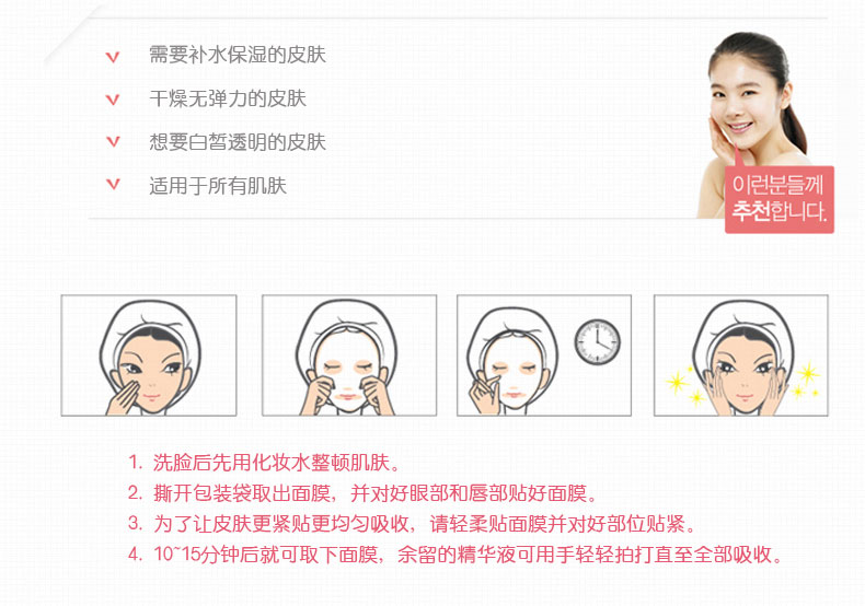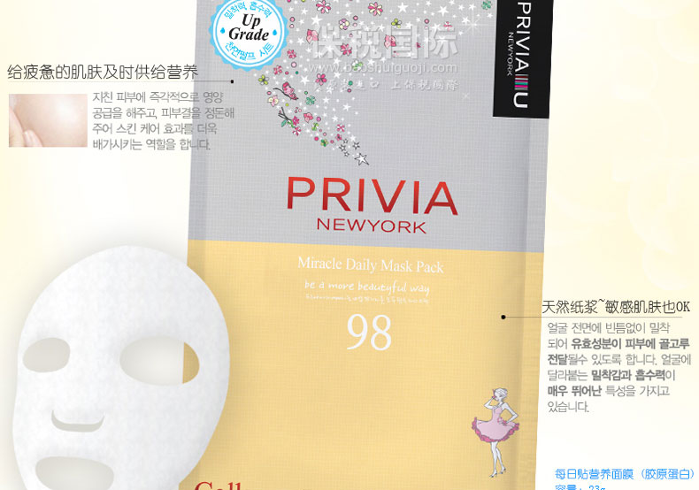 韓國原裝進口普瑞雅每日貼營養面膜 (膠原蛋白) 23g—— 給精疲力盡的皮膚供給營養,整齊皮膚紋路,可以感到兩倍的皮膚保養效果 |
