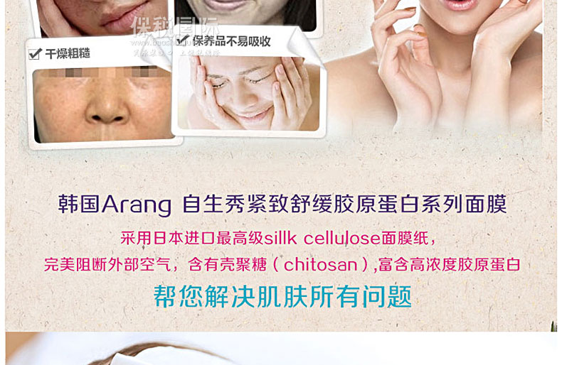 | 品 牌 | 韓國Arang | 產品功效 | 活力,彈性,保濕 | |