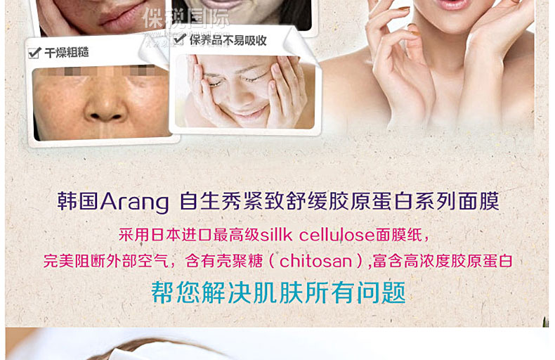 商品名稱 | 韓國Arang 自生秀緊致舒緩膠原蛋白系列面膜 10片裝 | ||