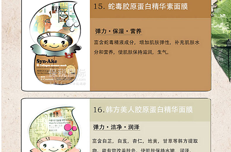 商品名稱 | 韓國Arang 自生秀緊致舒緩膠原蛋白系列面膜 10片裝 | ||