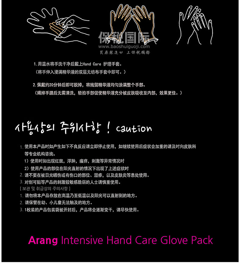 商品名稱 | 韓國Arang 超保濕集中營養(yǎng)護理手膜 10片裝 | ||