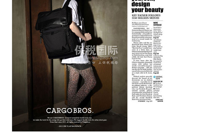 韓國人氣品牌CARGOBROS. CBF-黑色 個性時尚大型背包—— 1. 簡單干練的設計,CARGOBROS. 2012年推出的FLAP型背包。 2. 專屬于CARGOBROS.的包蓋理念,包包正面使用SL PVC緩沖材料,即使不放入任何物品也不易起皺。 3. 包蓋擋板兩側不使用緩沖材料,充分表現了自然感。 4. 正面有2個口袋,并分成不同的收納區域。 5. 背包兩側的隱藏口袋采用斜線處理,強調了獨特的設計感。 6. 背包包蓋處附有拉鏈,即使不打開包蓋也可輕松放入物品。 7. 背包每一面都使用厚厚的TOILON內裝材料,并設有筆記本電腦的專用收納層。 |