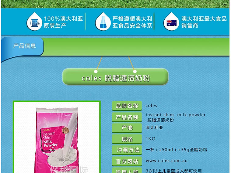 | 規(guī) 格 | 1袋裝;2袋裝 | 品 牌 | 澳大利亞 coles | |