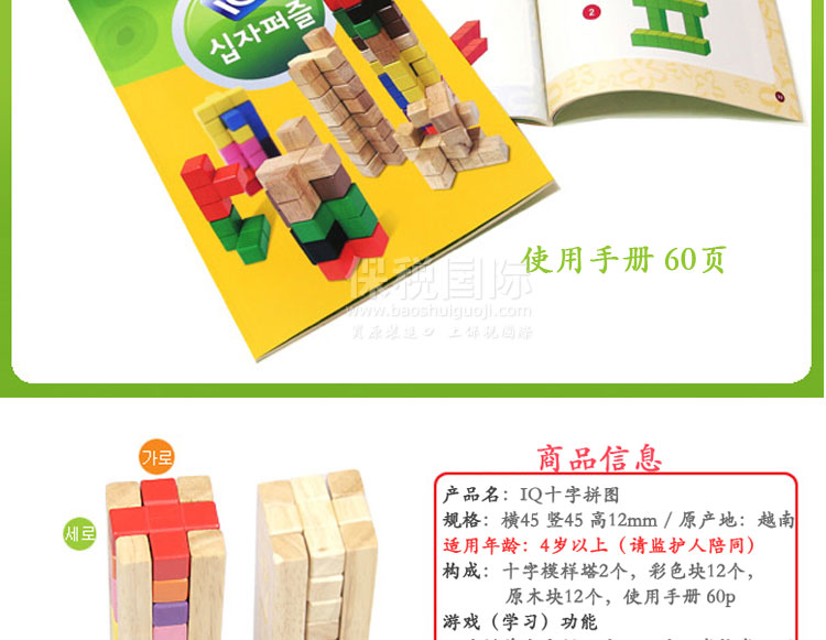 韓國(guó) WOOD PEER IQ十字拼圖 兒童早教益智玩具 |