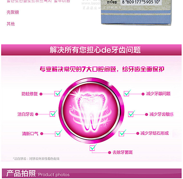 | 品 牌 | 韓日制藥 HANIL | 功 效 | 美白、抗敏感、防蛀/固齒、抗菌、口齒留香 | |