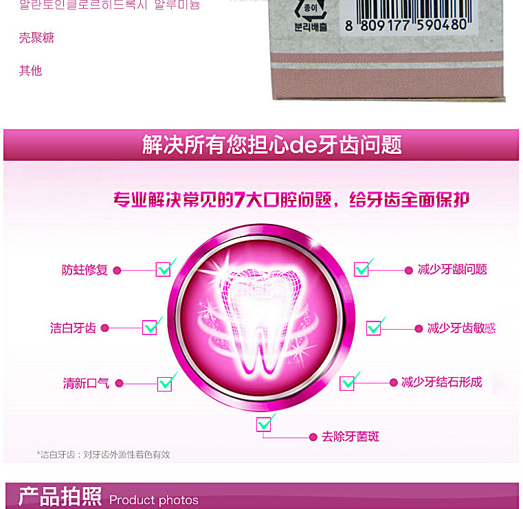 | 品 牌 | 韓日制藥 HANIL | 功 效 | 美白、抗敏感、防蛀/固齒、抗菌、口齒留香 | |
