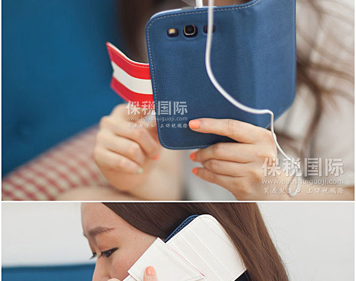 韓國Happymori 淺藍色皮套旗幟插卡保護殼—— 1.合成革,方便,多用,保護手機,且不易變形 2.設(shè)計簡約,大方,凸顯女孩的氣質(zhì) |
