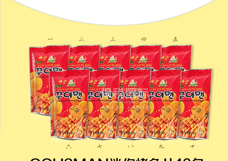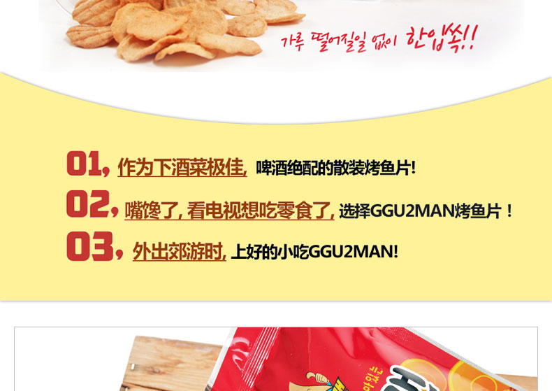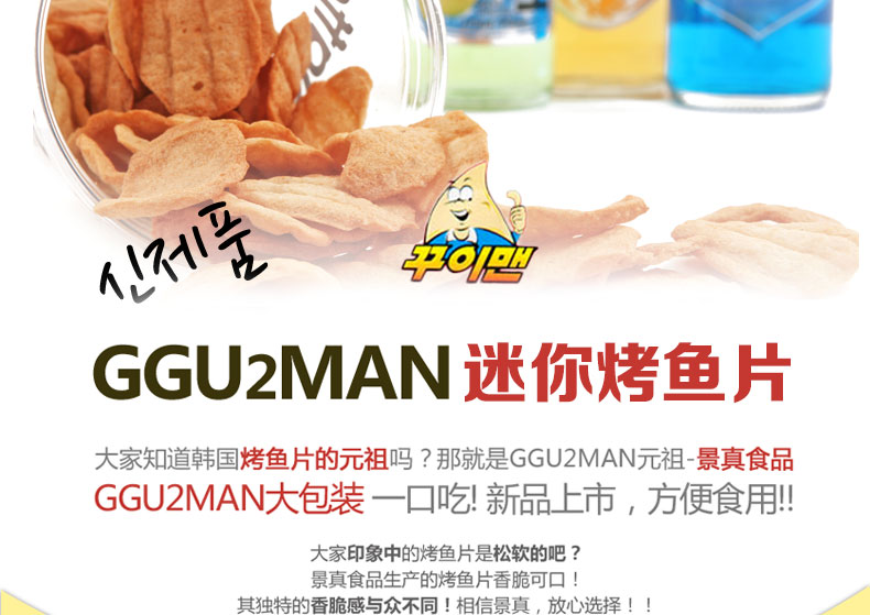 GGU2MAN 迷你烤魚片 70g/包*10—— 不要只喝啤酒吃炸雞哦,嘗一下啤酒下酒小菜GGU2MAN烤魚片 香脆可口,啤酒絕搭!下酒菜更美味的GGU2MAN GGU2MAN是用魚肉加工而成的魚干制品,是韓國非常有名的零食。 有點嘴饞了或想喝一杯時就選GGU2MAN~跟喜歡的偶吧一起,享受魚肉的美味吧! |