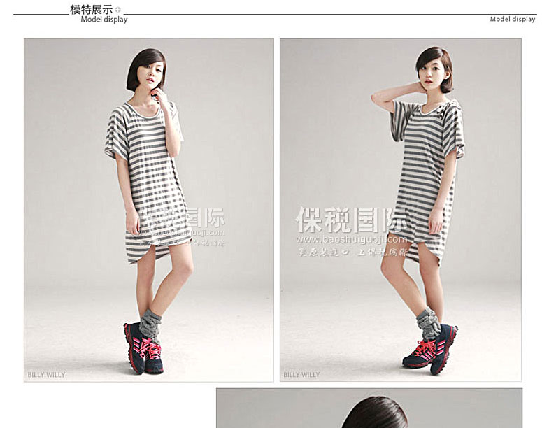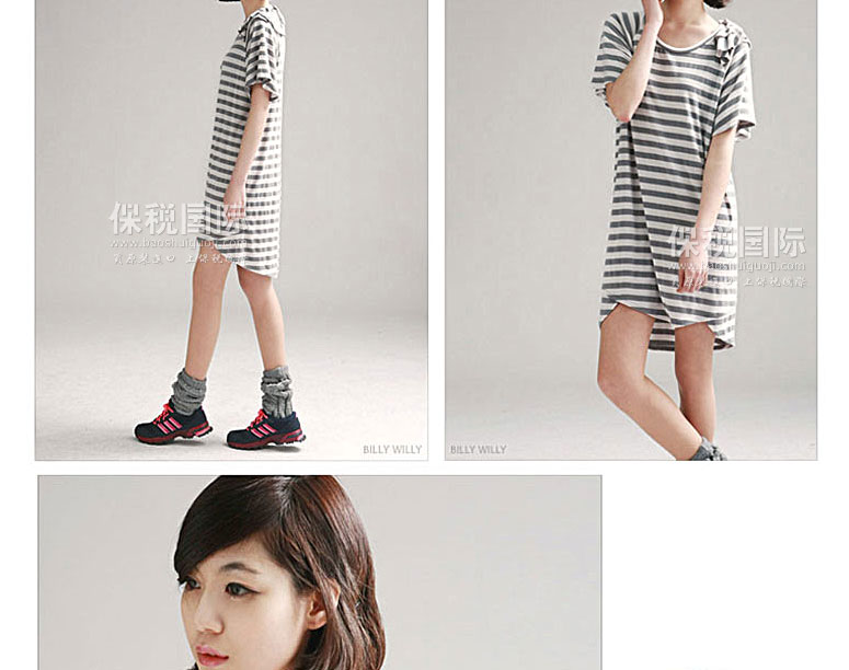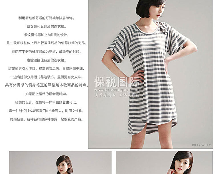 BILLYWILLY燈籠袖條紋連衣裙—— 利用褶皺感的燈籠袖單掛肩裝飾,既女性化又舒適的連衣裙。 條紋模式再加上A曲線的設計,使的整體上顯出輕盈曲線感。 前后不平衡的長度感成為要點,單獨穿的時候,也能遮擋住背后的連衣裙。 燈籠袖更引人注目,提高衣著品味,顯得胳膊更細 |