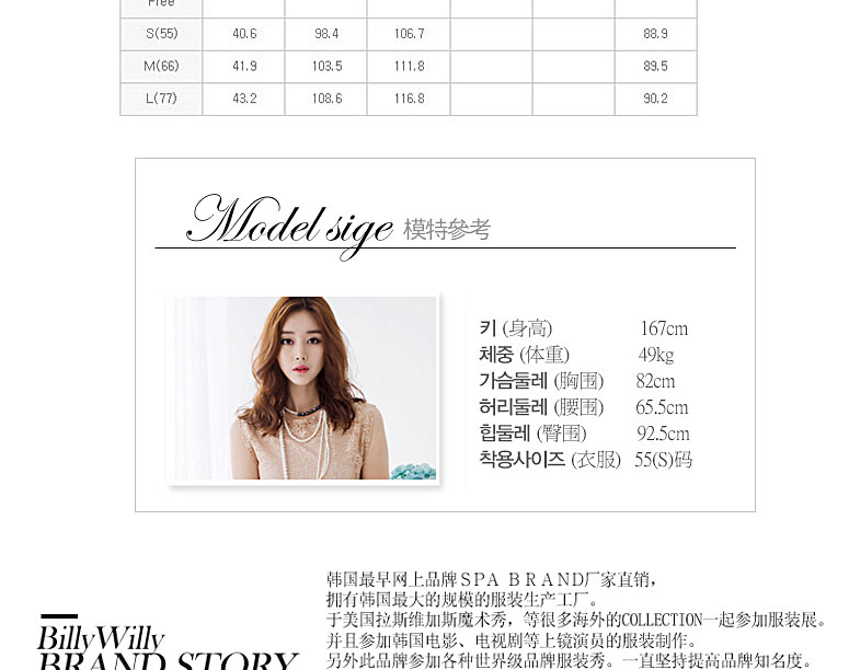 66(肩寬41.9/胸圍103.5/總長89.5);77(肩寬43.2/胸圍108.6/總長90.2) |
