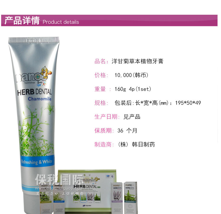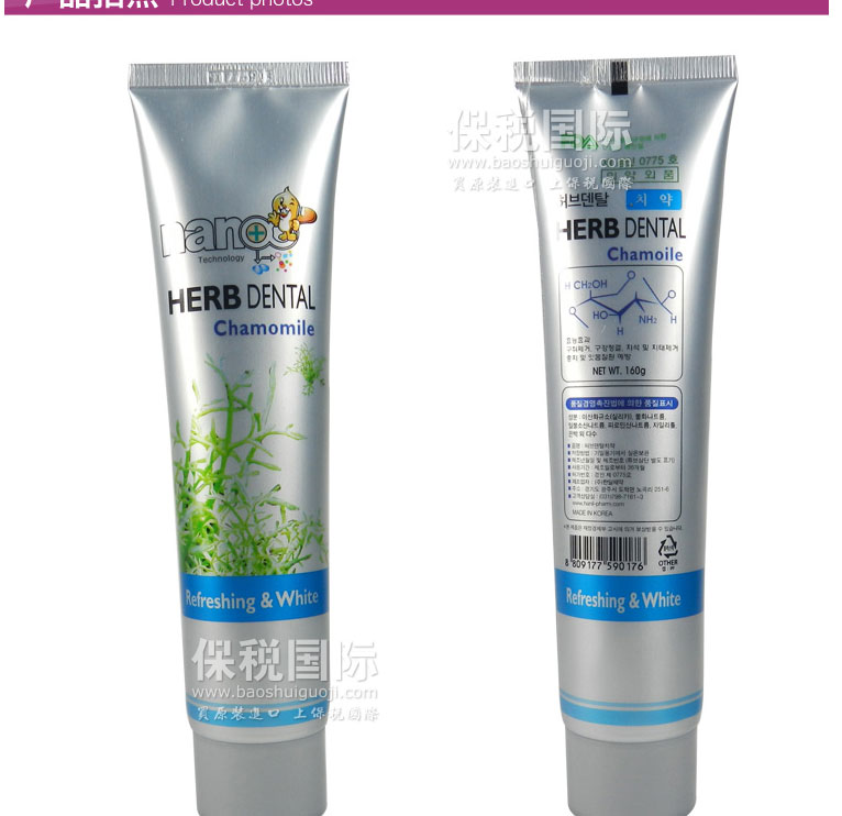 商品名稱 | 韓國韓日制藥HANIL洋甘菊草本精華美白牙膏 160g | ||