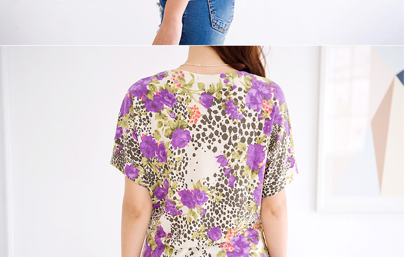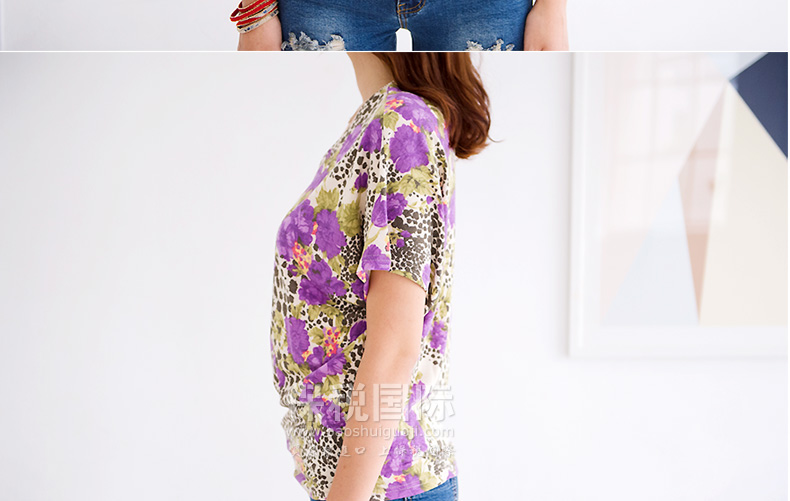 BILLYWILLY花園豹紋短款T恤衫—— ①鮮艷的豹紋圖案,時(shí)尚驚艷 ②純棉面料,質(zhì)地柔軟,彈性極佳 ③隨肩袖設(shè)計(jì),寬松舒適。腰部稍有收緊,起到修身顯瘦的效果 |