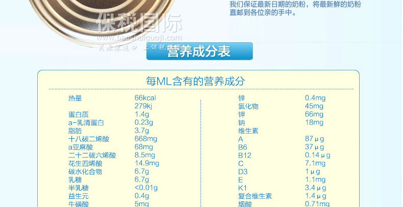 | 包裝種類 | 罐裝 | 產品產地 | 新西蘭 | |