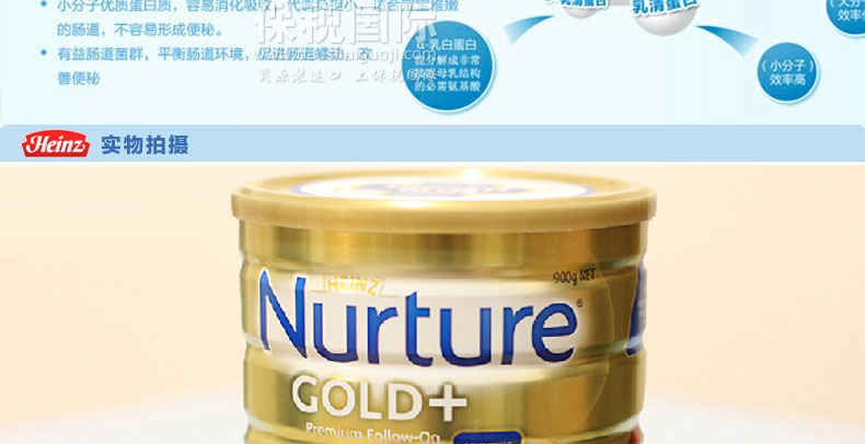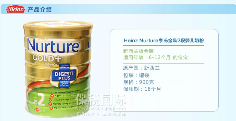 新西蘭原裝進口 HEINZ亨氏Nurture金裝 嬰兒配方奶粉二段 6-12個月 900g/罐 |