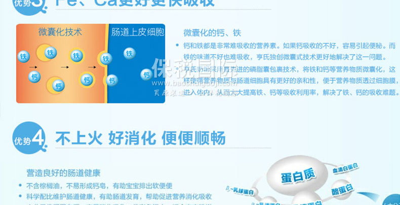 1. 亨氏金裝2段比普通2段多添加了ARADHA及益生菌(雙岐乳桿菌)。 2. 亨氏2段金裝奶粉適用于6-12個月的寶寶。 3. 是以酪蛋白為主,適合6個月以上嬰兒的美味的奶粉。 4. 添加Omega 3 DHA,ARA,并含有豐富維他命C,幫助吸收鐵質。Omega 6和DHA是一種對腦,眼睛及神經發育極重要的物質。 5. 接近母乳的配方,幫助寶寶的免疫系統,讓寶寶們喝起來感覺是在喝媽媽的奶。 |