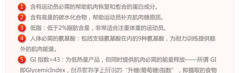 3. 該產品脂肪含量低于1%,由高價值的生理蛋白制成,含有人體必需的大量氨基酸。