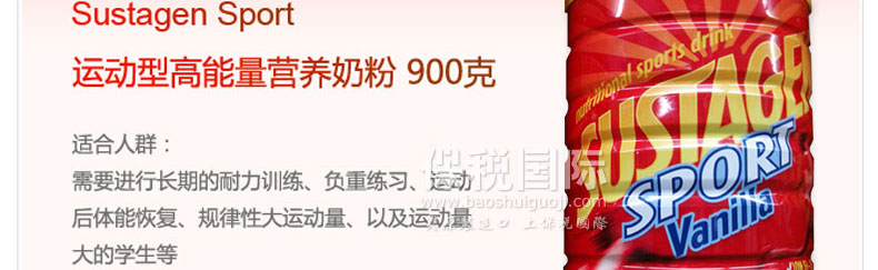 商品名稱 澳洲原產 NESTLE/雀巢 Sustagen Sport運動型能量營養奶粉香草味 900g