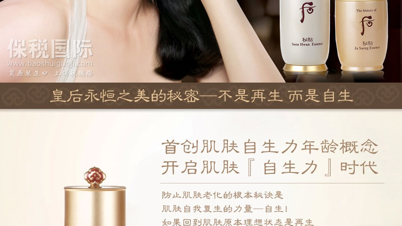 韓國原裝進口WHOO后秘貼密貼自生三合一精華 密貼套盒—— 秘貼精華:不分年齡膚質。是再生皮膚,針對一次性解決皺紋、缺乏彈性、保濕、臉色黯淡等各種皮膚問題而創造的純精華素系列。擁有不同于以往任何系列的產品概念精髓——自生!其超級滲透和吸收的技術,亦代表了LG的研究和技術實力。 秘貼精華高保濕,抗皺抗敏,提拉緊致,促進血液循環,同時從皮膚彈性、自生能力、自行治愈能力、適應能力上都有很大的改善和進步。 |