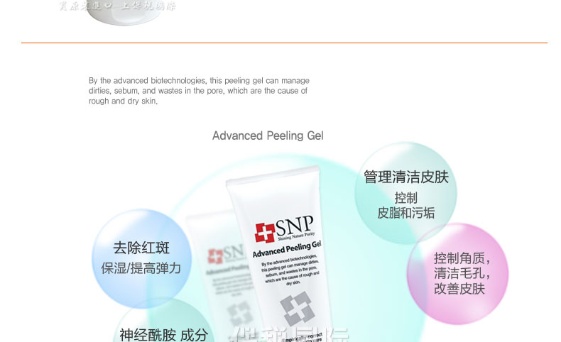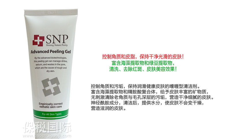 韓國人氣藥妝SNP 深層清潔嗜喱 150ml—— 1. 控制角質清除污垢,保持潤滑健康的皮膚。 2. 富含海藻提取物和精胺酸復合體,給予皮膚豐富的礦物質,無刺激清除老角質與毛孔深層的污垢,營造干凈細膩的皮膚。 3. 神經胺酸成分:清潔后,提供水分,使皮膚不會變干燥,營造滋潤的皮膚。 |