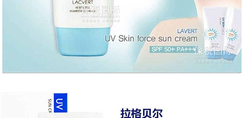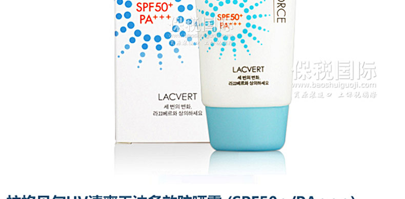 韓國 LACVERT 拉格貝爾 UV SKIN FORCE 防曬霜 SPF50+ PA+++ 70ml—— 油水份平衡,不油膩,清新柔和的一款防曬霜。 超強的防紫外線效果,戶外活動多時也能夠有效保護肌膚。 防曬指數(shù)達SPF50+PA+++ 特含保濕精華成分,為皮膚補充水分,無油成分告別夏天的油膩感覺,采用BB霜的部分配方,添加隔離功效,為皮膚遮蓋細小瑕疵,SPF50防曬指數(shù)保護皮膚不被曬黑,為你的皮膚帶來全方位的保護。 |