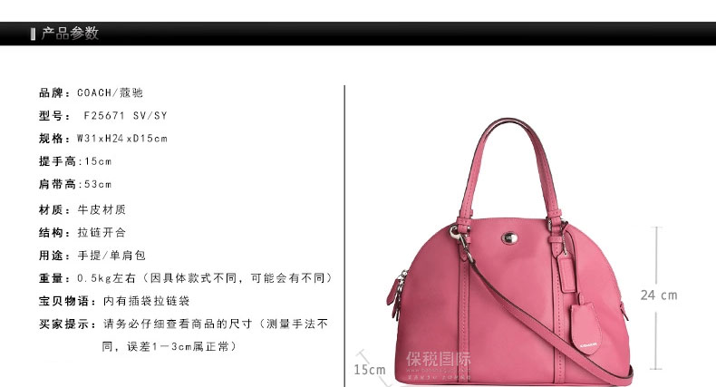 | ?品 牌 | ??? 蔻馳COACH | 規(guī) 格 | 底部長31cm*高24cm*寬15cm | |