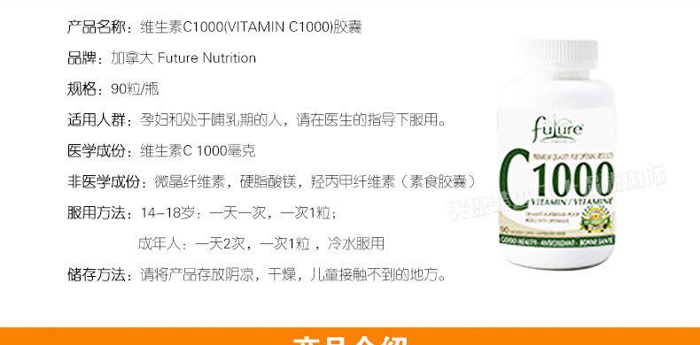 加拿大 Future Nutrition 維生素C1000(VITAMIN C1000)膠囊 促進身體的新陳代謝保健品 90粒/瓶 |