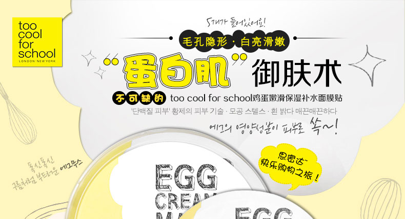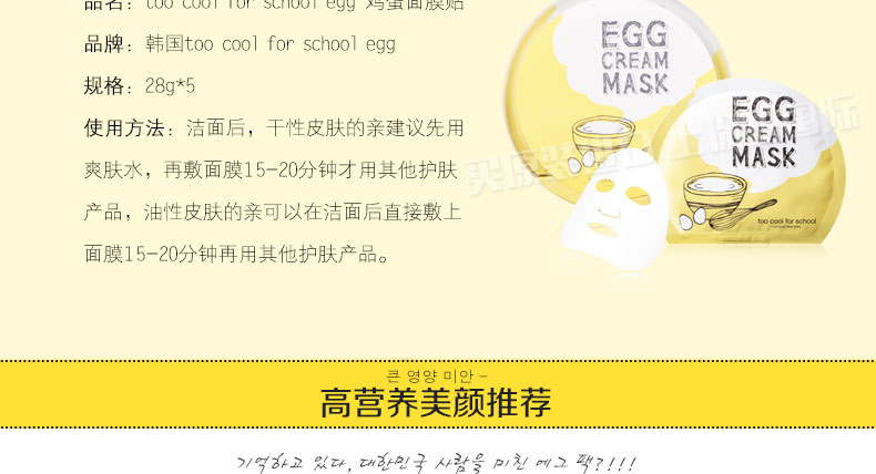 韓國(guó)too cool for school egg 雞蛋面膜貼 讓你的肌膚像剝了殼的雞蛋一樣 28g*5片 |