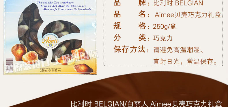 比利時(shí) BELGIAN/白麗人 Aimee貝殼巧克力禮盒 愛人家人最好的禮物250g/盒 |