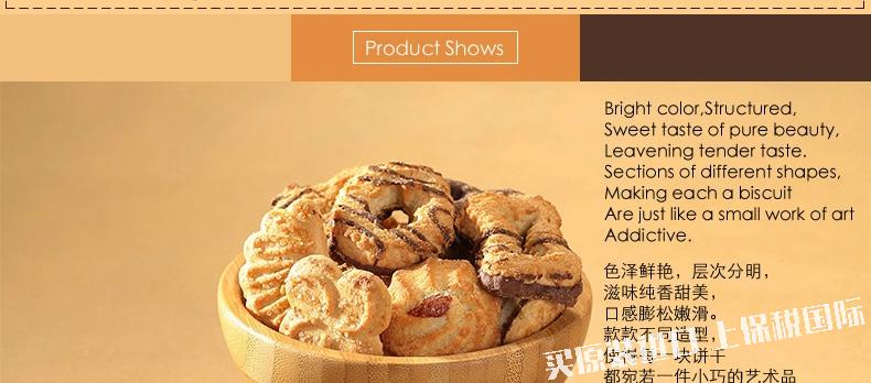 歌斯洛混裝華夫曲奇餅干 手工制作 香濃酥脆/辦公休閑小零食5%cholocote 400g/包 —— 1、色澤鮮艷,顏色搭配分明,讓人胃口大開。 2、口感蓬松嫩滑,香濃酥脆,讓你體驗無上美味。 3、款款不同造型,宛如藝術品,讓人愛不釋手。 |