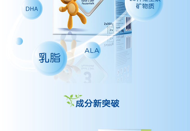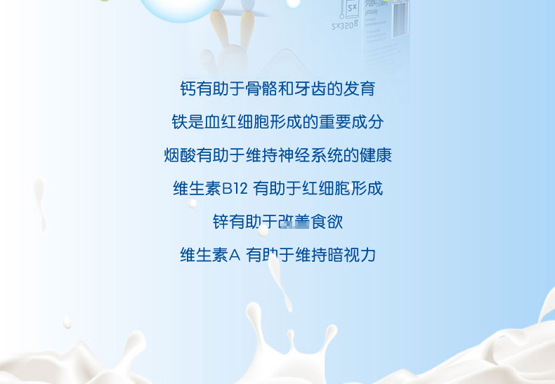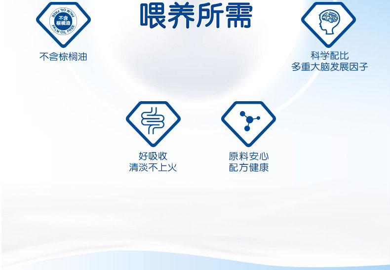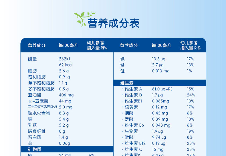 1、富含DHA/AA 幫助腦部及視力發育,健康益智,接近母乳 。 2、蘊含GOS等益生元組合,調理腸胃,減少寶寶便秘。 3、 蘊含維生素D及核苷酸,富含鐵質,有助于骨骼增長,增強免疫力,減少貧血。 4、特有的20多種免疫元素的添加,根據寶寶不同的生長階段的需要,在合理補充營養的同時,強健寶寶的抵抗力。 5、 絕不添加防腐劑,香精,色素和蔗糖,更健康,更接近母乳。