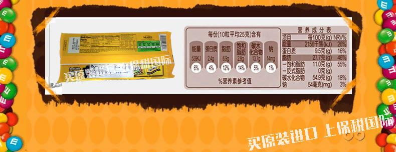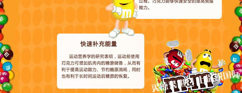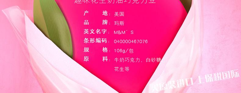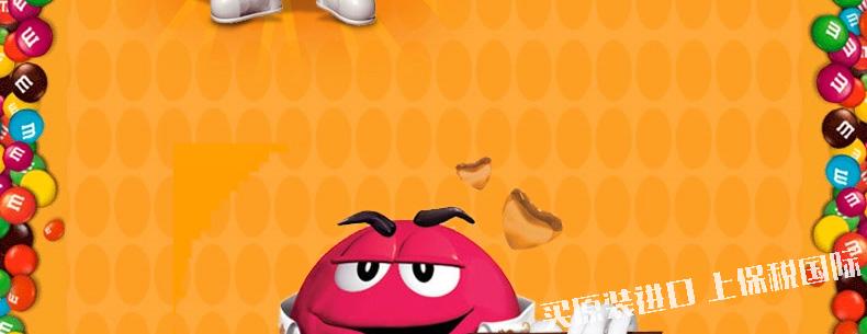 美國瑪斯m&m's 趣味花生巧克力豆6包裝經典美味零食106g 3.74oz—— 1.亮黃色的醒目包裝,調皮的卡通形象。 2、橢圓形飽滿花生,外層包裹香滑巧克力和薄脆糖衣。 |