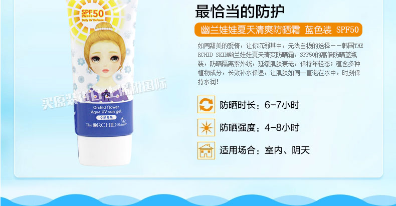 韓國THE RCHID SKIN幽蘭娃娃夏天清爽防曬霜 藍色裝 SPF50 防曬隔離 補水保濕 50ml/瓶 |