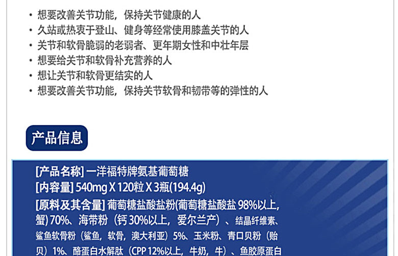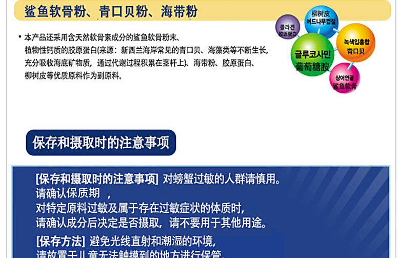 | 產 地 | 韓國 | 功 效 | ?? 保護關節 骨骼營養 | |