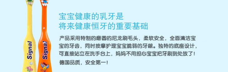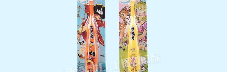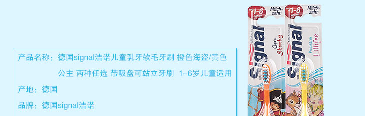 德國(guó)signal潔諾兒童乳牙軟毛牙刷 橙色海盜/黃色公主 兩種任選 帶吸盤可站立牙刷 1-6歲兒童適用 |