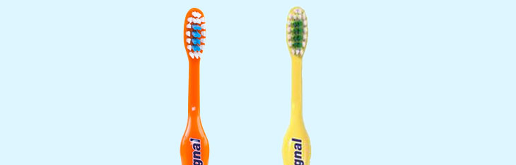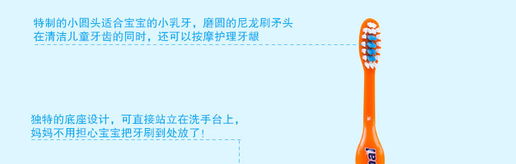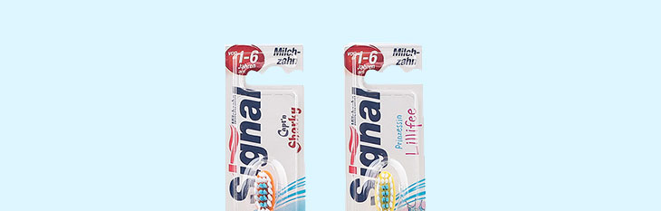 德國(guó)signal潔諾兒童乳牙軟毛牙刷 橙色海盜/黃色公主 兩種任選 帶吸盤可站立牙刷 1-6歲兒童適用 —— 1、底部帶吸盤,是可以站立的牙刷。 2、特殊軟毛區(qū)可以正確指示牙膏用量。 3、可愛卡通人物和鮮艷顏色,讓孩子刷牙樂(lè)在其中。 |