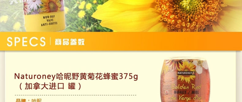 加拿大Naturoney 哈昵黃花蜂蜜 野生黃菊花蜂蜜 單花蜂蜜 保健食品 375g/罐 |